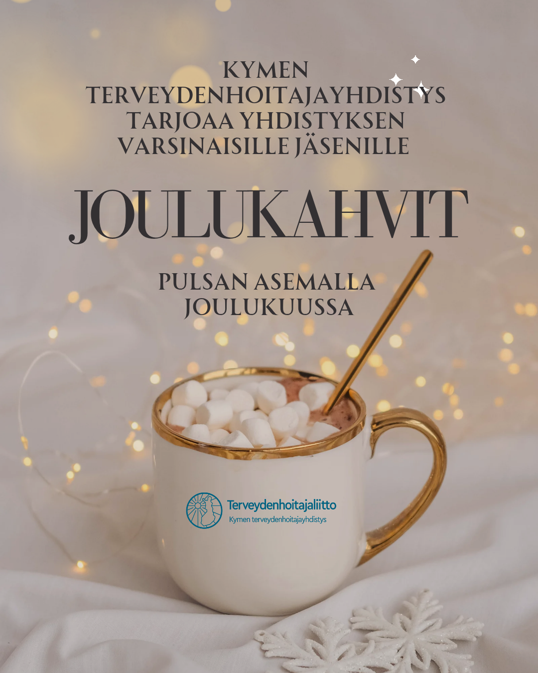 Kymen Terveydenhoitajayhdistys toivottaa yhdistyksen varsinaiset jäsenet joulukahville Pulsan Asemalle. Tästä tulossa lisäinfoa pian ❤️